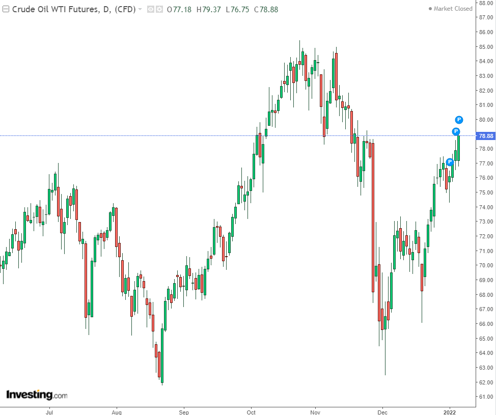 21년 12월 30일 WTI유 가격은 배럴당 76.99달러로 마감하였다. 반면, 지난 10월 대형은행들은 브렌트유 가격을 21년 12월에 배럴당 90달러로 예측했으나 도달하지 못했다. 너무 낙관적이었던 것이다.