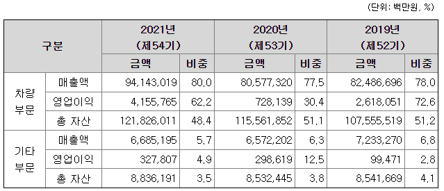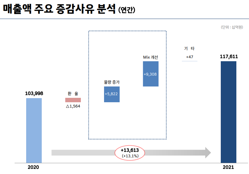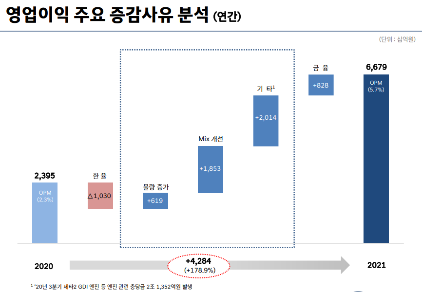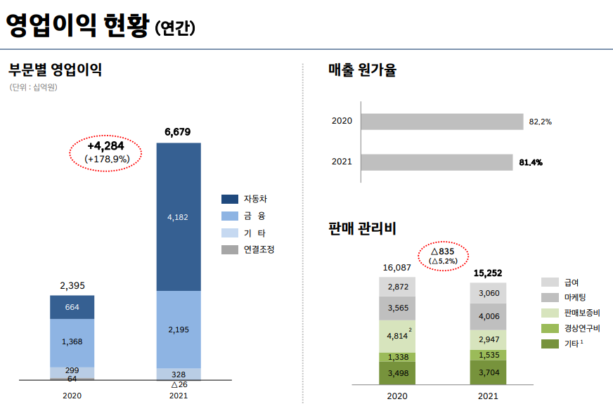 코로나로 인한 자동차 부문 영업이익 향상이 컸음.