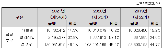금융업은 할부, 리스등의 여신전문금융업, 현대카드로 알려진 신용카드업으로 구성.
