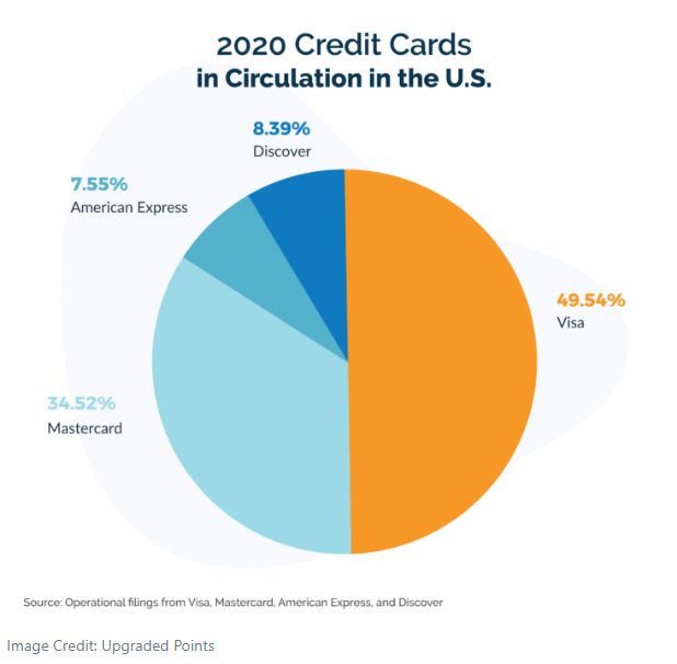 글로벌과 미국 내 신용카드 시장에서 Visa가 역시 압도적인 점유율로 앞서고 있다.
