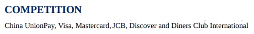 신용카드 사업은 경쟁이 치열한 편이다. 위와 같은 기업들이 경쟁기업으로 나열된다.