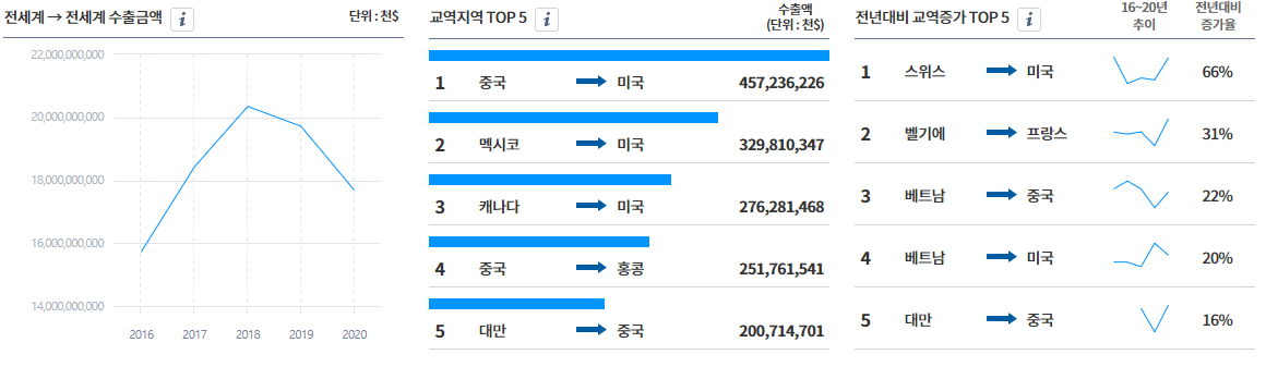 Kotra 웹사이트에서는 무역 데이터를 제공한다. 시점을 선택해 볼 수 있어서 정리해봤다.