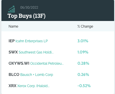 또한 2분기 기준이지만 칼 아이칸도 포트폴리오를 일부 에너지주로 구성, 옥시덴탈의 워런트 비중도 가지고 있다.