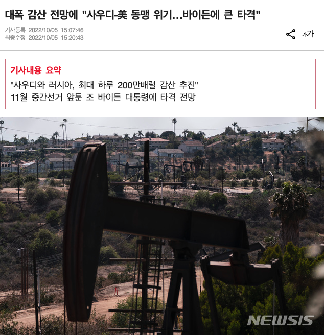 바이든은 이에 대해 우려된다는 반응, 비축유를 계속 방출한다는 입장이지만