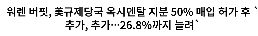 버핏이 연이어 옥시덴탈을 매집하고 지분의 50%까지 매입하는 것에 허가를 받았다.
