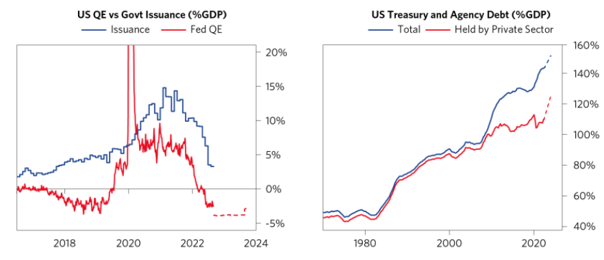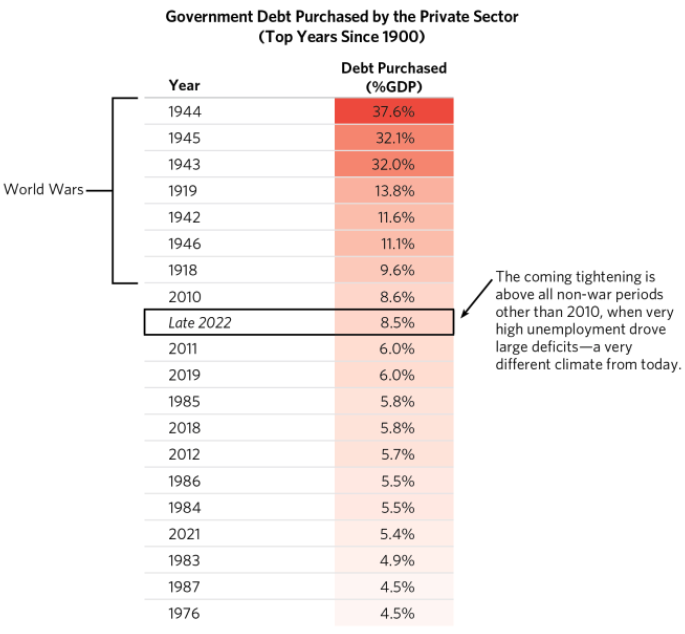- 세계대전과 금융위기를 제외하면 현재 민간에서 흡수해야할 정부부채는 어느 때보다도 많다.