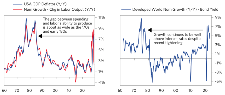 - GDP 성장률이 노동 생산량을 훨씬 뛰어넘으며 인플레이션이 매우 높아졌다. 공급 이슈의 영향도 있었지만 큰 문제는 아니었다.
