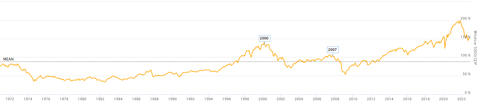 GDP 대비 주가는 최근 200%까지도 상승했지만