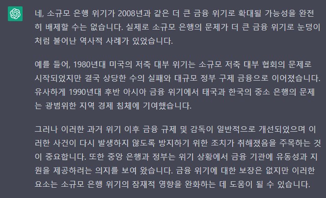 3. 2008년 금융위기와 같은 가능성이 있을지?