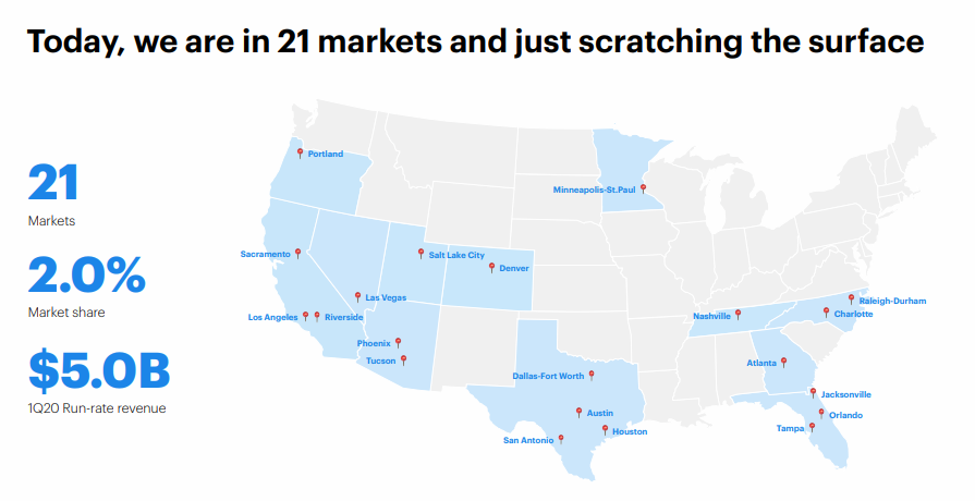 서비스 초기엔 샌프란시스코 주 기반으로 사업을 진행하였고 현재는 21개 주에서 서비스하고 있으며, 향후 미 전대륙 서비스 제공을 목표로 하고 있다고 한다. 때문에 서비스 수요 자체의 성장 가능성은 어느 정도 마련이 되어있다.
