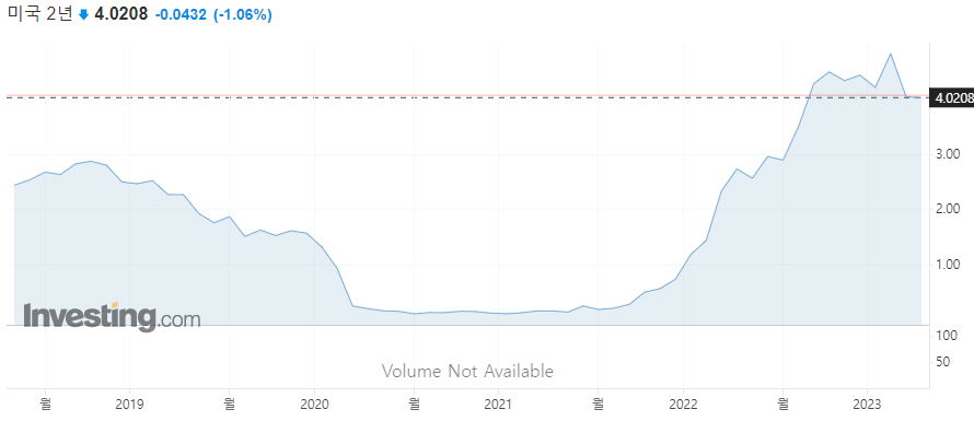 22년 7월부터 현재까지 대략 9개월간 역전상태이며