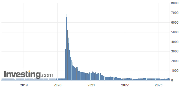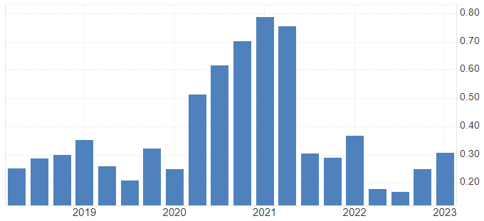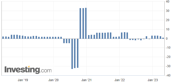 23Q1 미국의 GDP 성장률은 1.1%로 예상 (2.0%)에 못 미쳤다. 코로나를 제외하곤 최저치로 접어드는 모습이다.경기 둔화에는 무게를 더하는 지표인데 시장 반응은 그리 민감하지 않은 듯