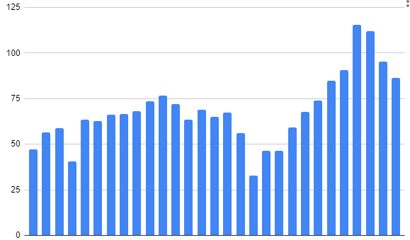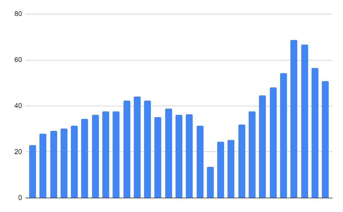 추이를 보면 코로나에 주춤하고 다시 상승세를 이어가는 모습.