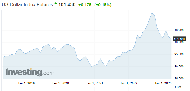 달러 인덱스는 지난 해 110을 찍고 계속 하락중.