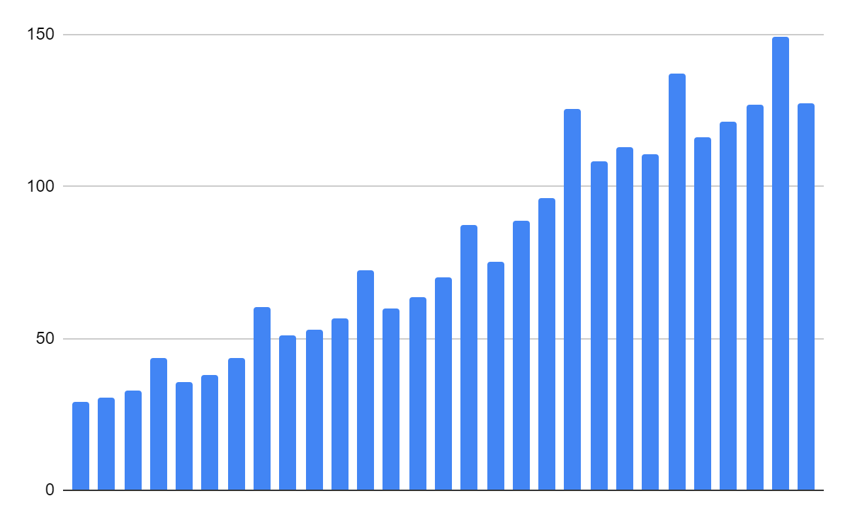 5개년간 꾸준히 성장해왔으며 계절성에 따라 1분기보다 2, 3 분기가 조금 높게 나오는 것 같다.