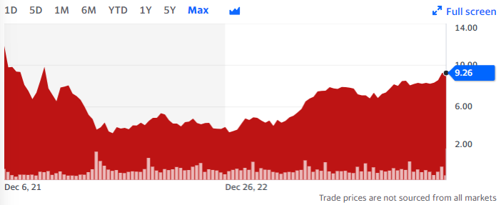 10달러 대로 상장한 지 2년이 조금 넘었으며 장세가 어려웠던 2022년 3달러 대까지 추락하였는데 2023년을 맞아 주가를 대부분 회복한 모습이다. 상장 이전부터 버핏이 관심을 가졌으나 정작 상장한 이후로는 물량을 대개 정리한 것으로 알고 있는데 이 부분은 확인이 필요하다. 다만 버핏의 포트폴리오에 아직 남아있는 종목이며 2023년 한 해 90% 이상의 수익률을 보여주며 가장 두드러지는 회복세를 보여준 주식이다.