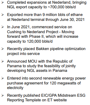 또한 미국 최대 다운스트림 회사인 SUNOCO를 자회사로 두고 있다. 이를 통해 미드스트림 사업에서의 가격경쟁력과 공급의 안정성을 가져갈 수 있다.