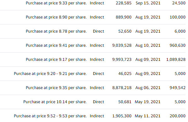 올 5월 이후 내부자 매수가 여러 차례 있었다. 매도는 없었다.