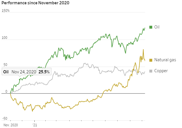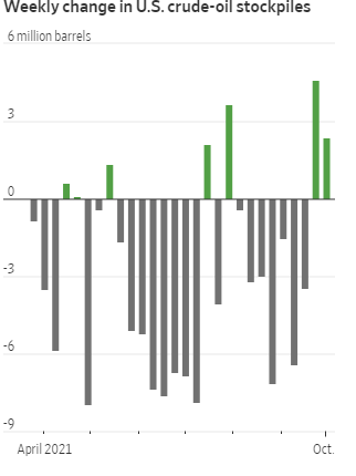 원유의 꾸준한 상승세는 많은 투자자들에게 원유의 공급 부족이 얼마나 상품가격을 올릴 지 가늠하게 하였다. 에너지 공급부족은 세계의 공장들을 둔화시키고 최근의 인플레이션에 기여했다. 소비자물가의 상승과 국채 금리의 상승에 대한 우려는 결국 최근 몇주간의 미국 주식시장에 엄청난 변동성을 가져왔다.