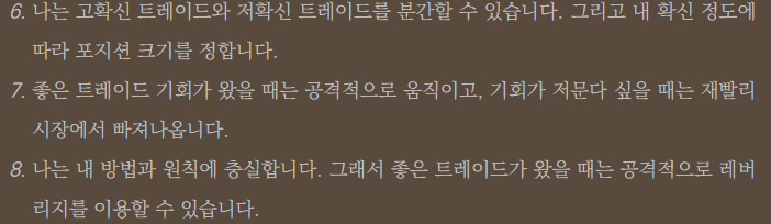 인내심이 제일 중요하다. 좋은 트레이드를 기다리며 아무 행동도 하지 않아야 한다.