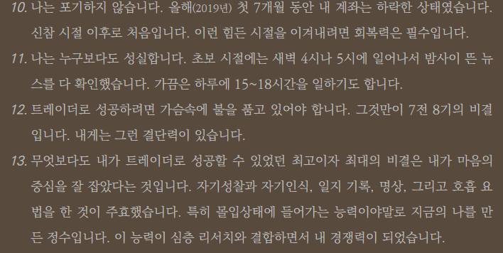 (1) 철저한 리서치와 계획 (2) 계획한대로, 리허설, 깊이 몰입, 실행 (3) 감정 유지