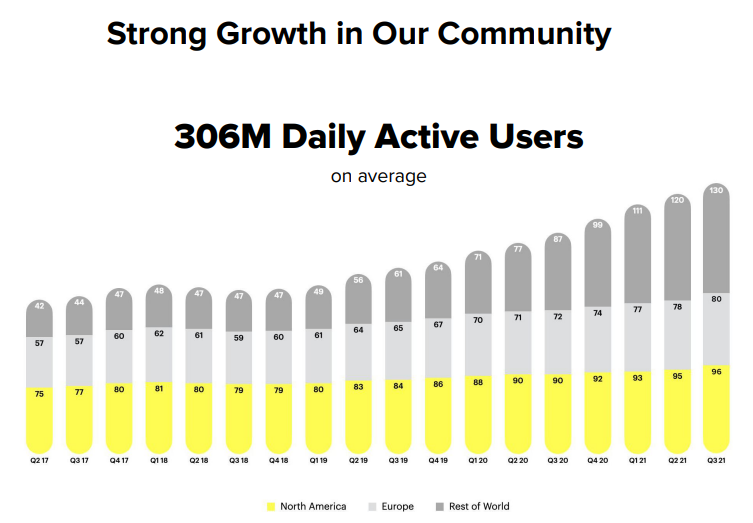 스냅의 경우, 1일 사용자가 전 세계적으로 3억 명, 미국만 9600만 명인데 아마 IOS 점유율이 상당할 것으로 예상된다.