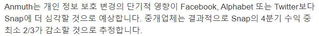 다른 기업들의 하락세는 비교적 크지 않은 편이다. 굳이 스냅의 주가가 많이 떨어진 것은 좀 의아하다.